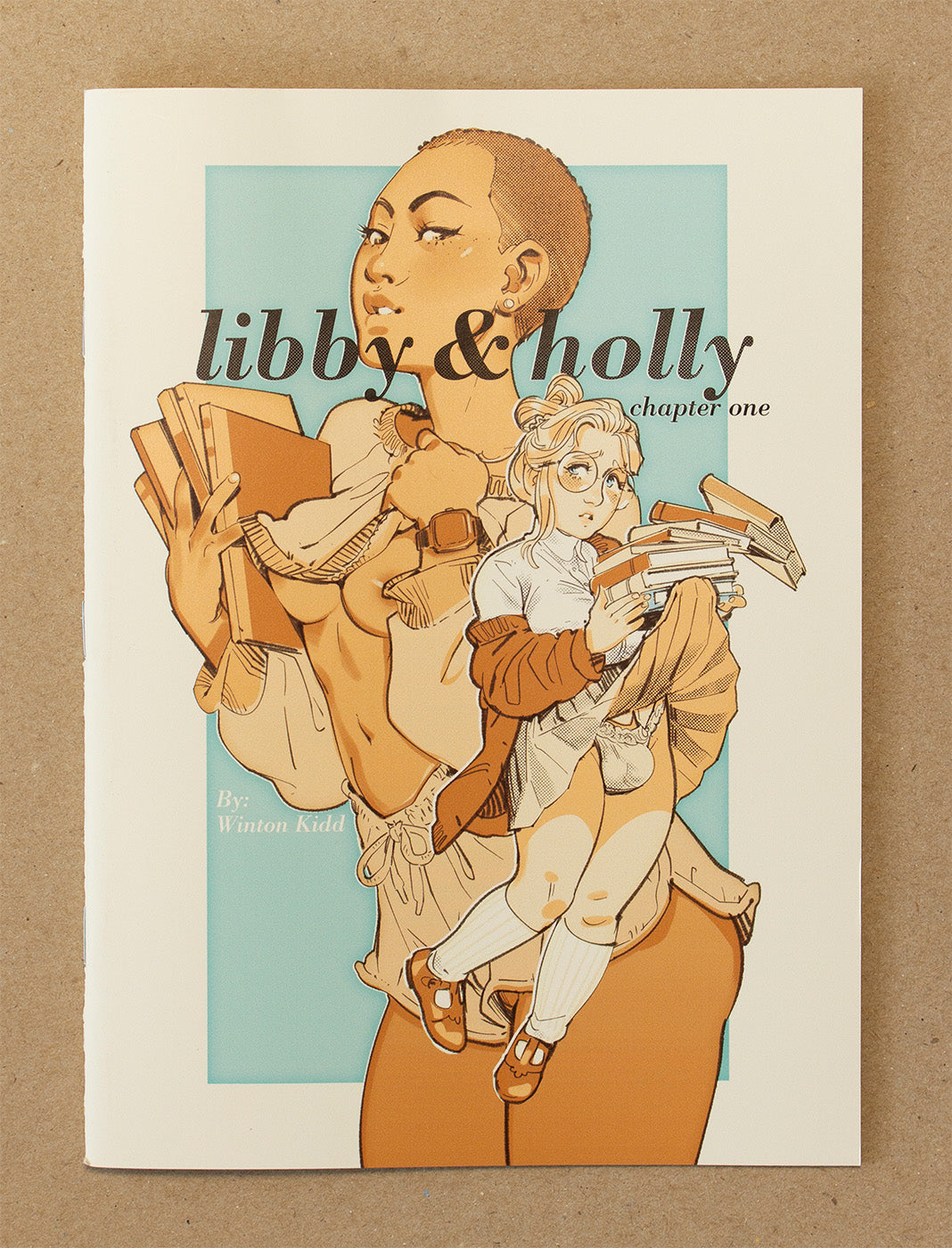 "Libby & Holly Chapter 1" is an 18 page erotic comic about Libby, a transfem librarian with an overactive imagination and Holly, the college student that happens upon her at just the wrong moment.